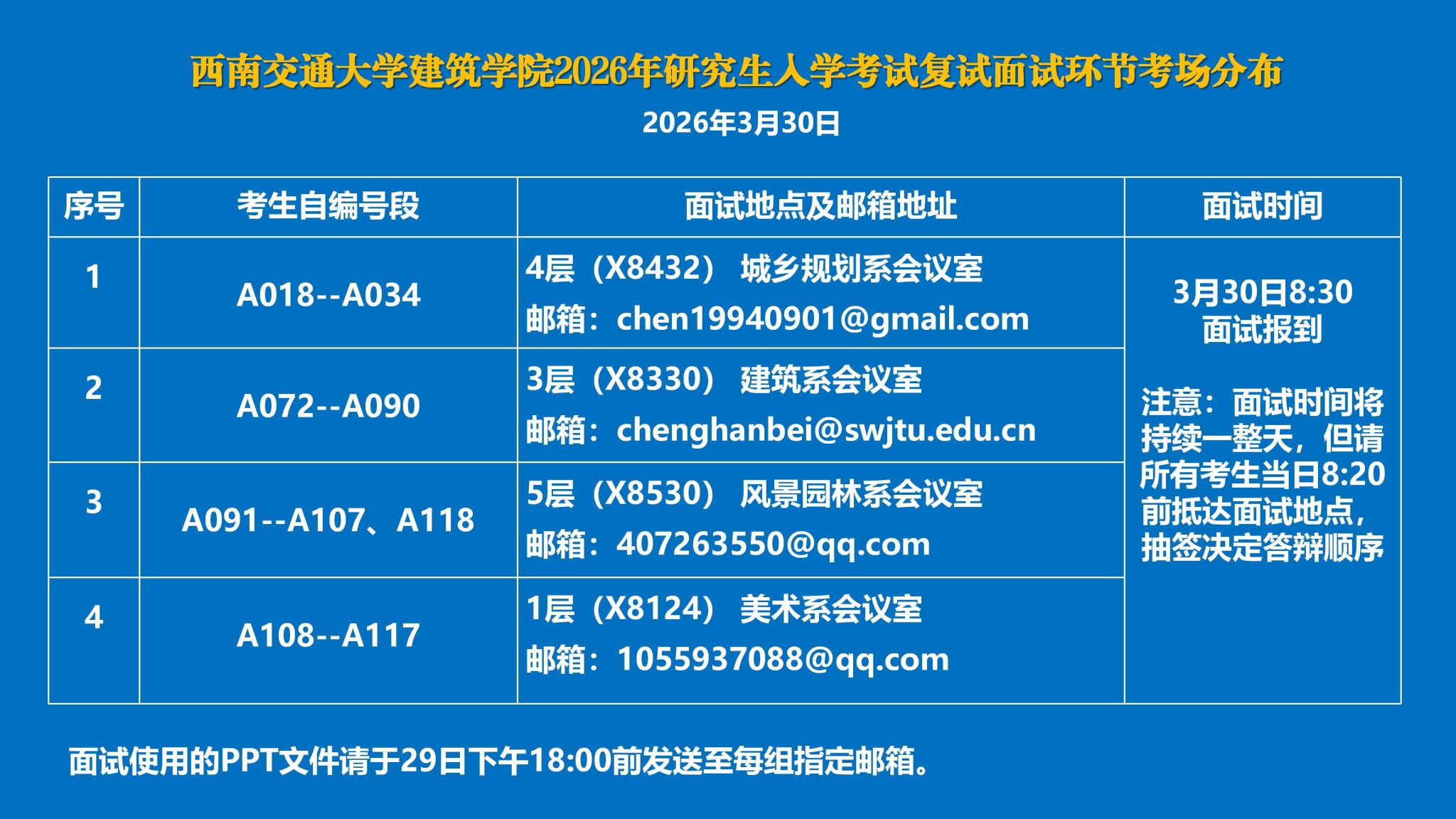 3月31日的考场安排及邮箱地址,请于3月30日下午 17:00官网查看。