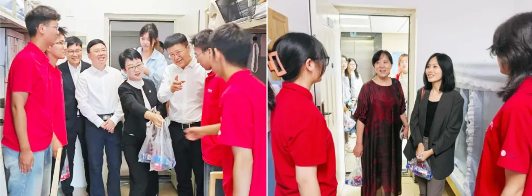 为进一步关怀新生入学适应情况,提前送上中秋-国庆节双节祝福,9月21日晚,西南交通大学建筑学院领导班子偕同建筑系、城乡规划系、风景园林系负责人,深入2025级新生宿舍开展走访慰问。