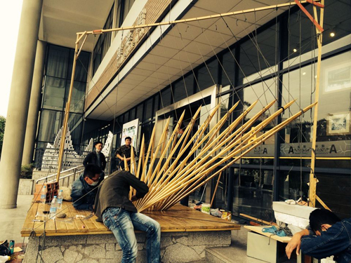 2014年4-5月建筑学院成功举办了西南交通大学建筑学院首届“建造节”活动。本次活动以2014年建筑学、城乡规划学专业评估为契机,以进一步激发建筑学院学生创新创造能力为目的,通过在建筑馆内外公共空间的实体建造活动,加深对材料、结构、空间、形态之间关系的理解和体验。提升学院内专业学习氛围,发挥学生创造积极性,提高学生的实践能力、锻炼学生动手操作能力,促进学生成长成才。
