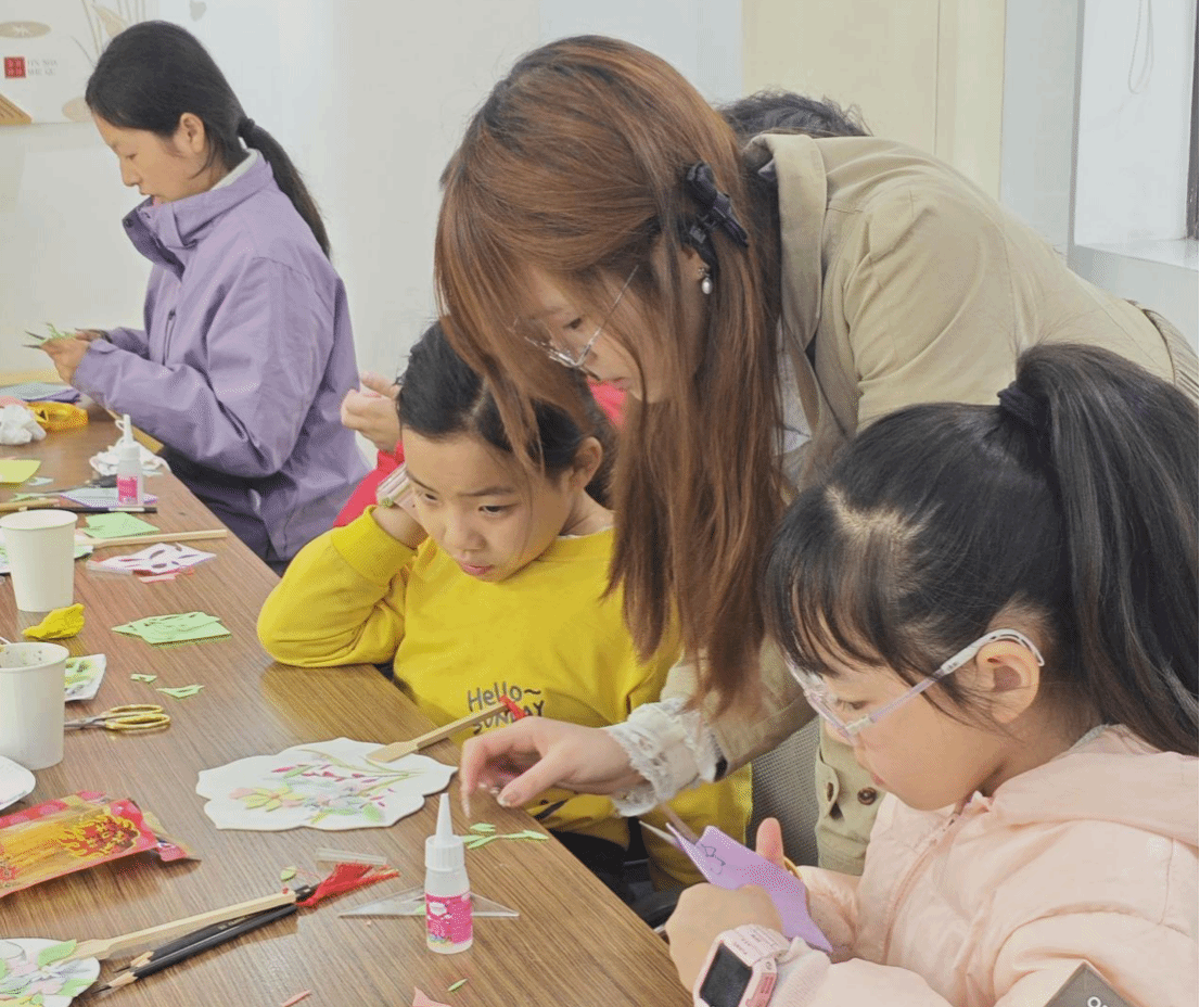 大学生志愿者精心设计的“非遗科普+趣味实验”课堂,将“漆扇晕染原理”等科学知识融入传统技艺。哥哥姐姐们用通俗易懂的语言讲解背后的科学逻辑,以“大朋友”的视角激发“小朋友”的好奇心,让孩子们在动手操作中既懂原理又会创作。