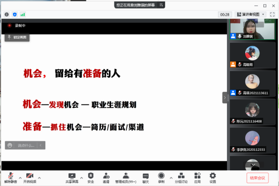 院就业服务中心承办的2021“女生职业成长训练营——简历制作和成功面世”工作坊,于11171930腾讯会议线上会议室举办。此次我们邀请到了东原地产华西区域招聘负责人刘雅琪女士。