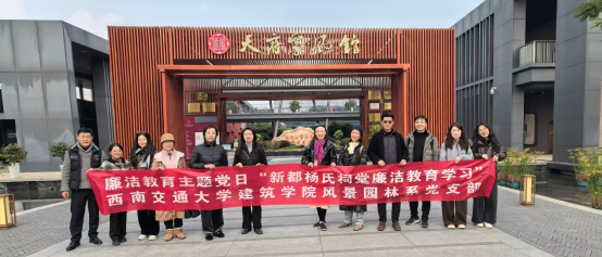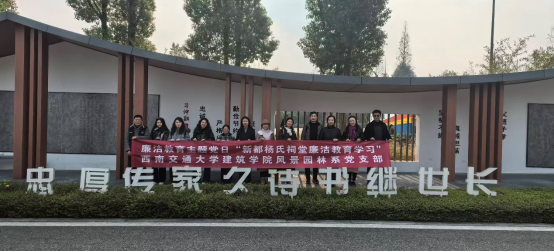 为深入学习贯彻党的二十大精神和二十届中央纪委全会精神,扎实推进党风廉政建设和清廉文化建设,进一步增强党员干部廉洁自律意识,筑牢拒腐防变思想防线,2025年12月18日,建筑学院风景园林系党支部组织开展了以“传承清廉文化,涵养清正作风”为主题的党日活动,赴成都市新都区杨氏祠堂开展廉洁教育学习。